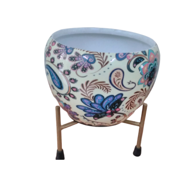 Designer Unique Metal Porcelain Pot With Stand For Succulent Plants