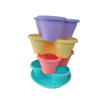 3 Dimensional Multi-Layer Planter / Flower Pot Indoor Outdoor ( 3 Stack + 1 Plate )